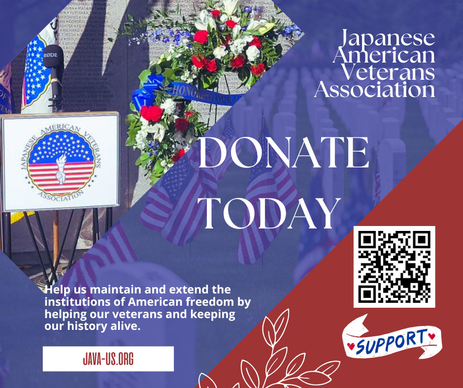 The Japanese American Veterans Association (JAVA) is an educational, patriotic, fraternal organization dedicated to maintaining and extending the institutions of American freedom. Our members include veterans of World War II, Korea, Vietnam, and the Gulf Wars. JAVA provides educational programs, advocacy, and community outreach to honor the legacy of WWII Nisei Soldiers. Although most of our members are Americans of Japanese Ancestry, our members are not exclusively Japanese Americans.