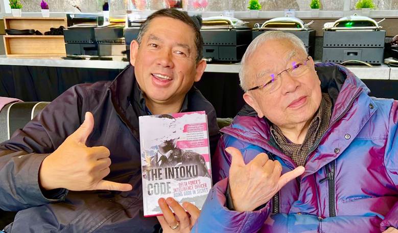 Photo of Wade Ishimoto (right) and Embassy of Japan Minister Masaru Sato. Courtesy of Howard High.Photo of Wade Ishimoto (right) signing Minister Sato’s copy of The Intoku Code. Courtesy of Howard High.