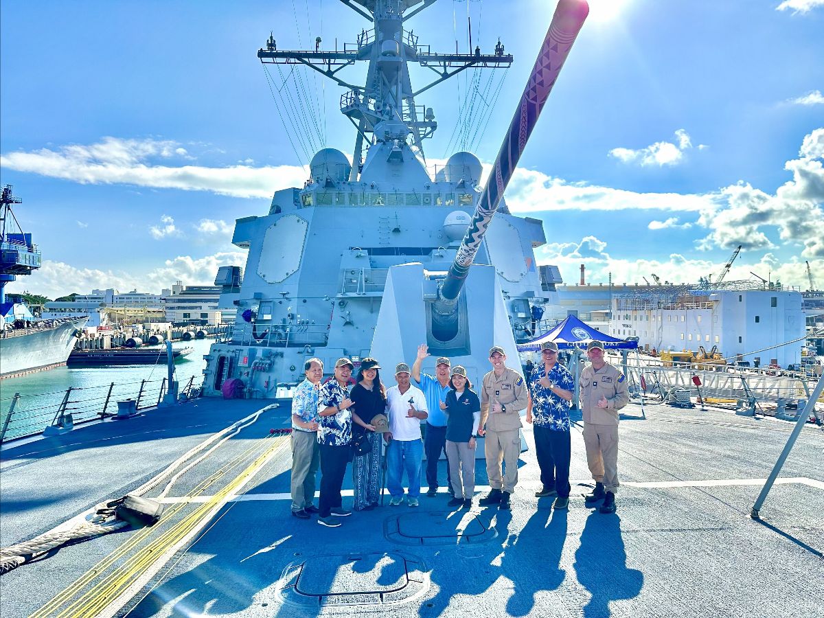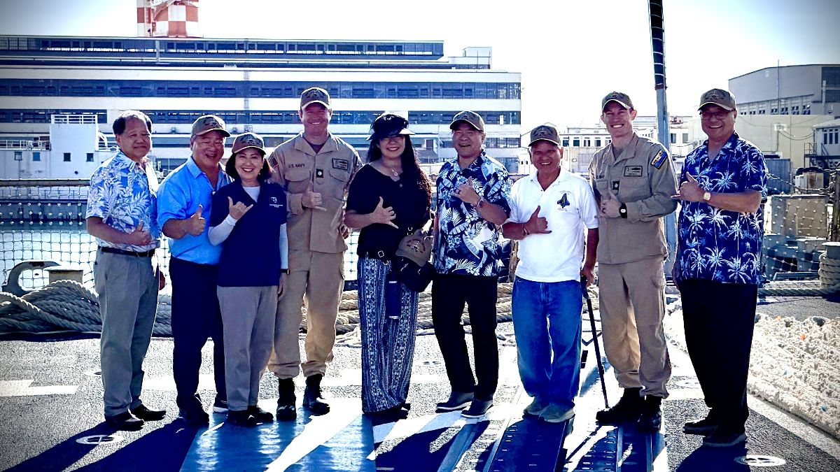 On 27 January 2026, members of JAVA and the 100th Infantry Battalion Veterans were invited to tour DDG-118, U.S.S. Daniel K. Inouye, one of the U.S. Navy’s newest Arleigh Burke destroyer. A gracious invitation from the commanding officer of the ship, Commander Ryan Kelly enabled the group unfettered access to the ship and crew. The tour started at the bridge, the highest part of the ship where the vessel is steered. From the bridge, the XO of the ship highlighted the capabilities of the ship and the view of Pearl Harbor was spectacular. The view of the U.S.S. Arizona Memorial, where World War II started for America and the U.S.S. Missouri, where the surrender documents were signed, the view from the bridge was an appropriate. From the bridge, the group moved to the galley, the dining facility where a tribute to the late senator and heroics of the 442nd Regimental Combat Team were prominently highlighted. Imagine a naval vessel honoring the heroics and legacy of an Army unit, it was dignified and touching.